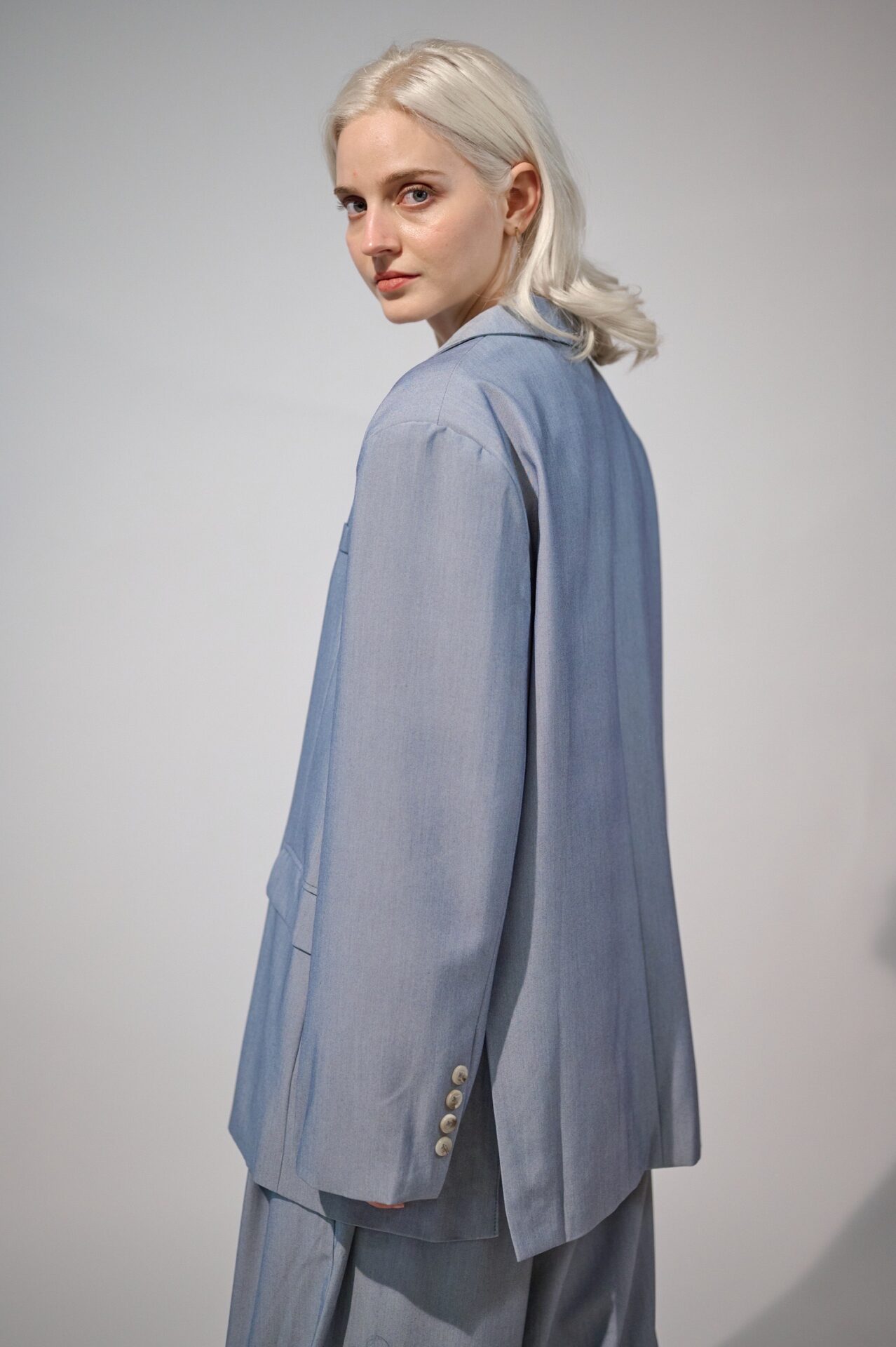 Le blazer Carla est la pièce tailoring incontournable pour structurer une silhouette avec élégance et modernité. Ce blazer oversize gris bleuté séduit par sa coupe ample parfaitement maîtrisée, qui apporte une allure à la fois sophistiquée et décontractée. Sa teinte gris subtilement bleutée illumine le teint et offre une alternative douce et raffinée au blazer noir classique.