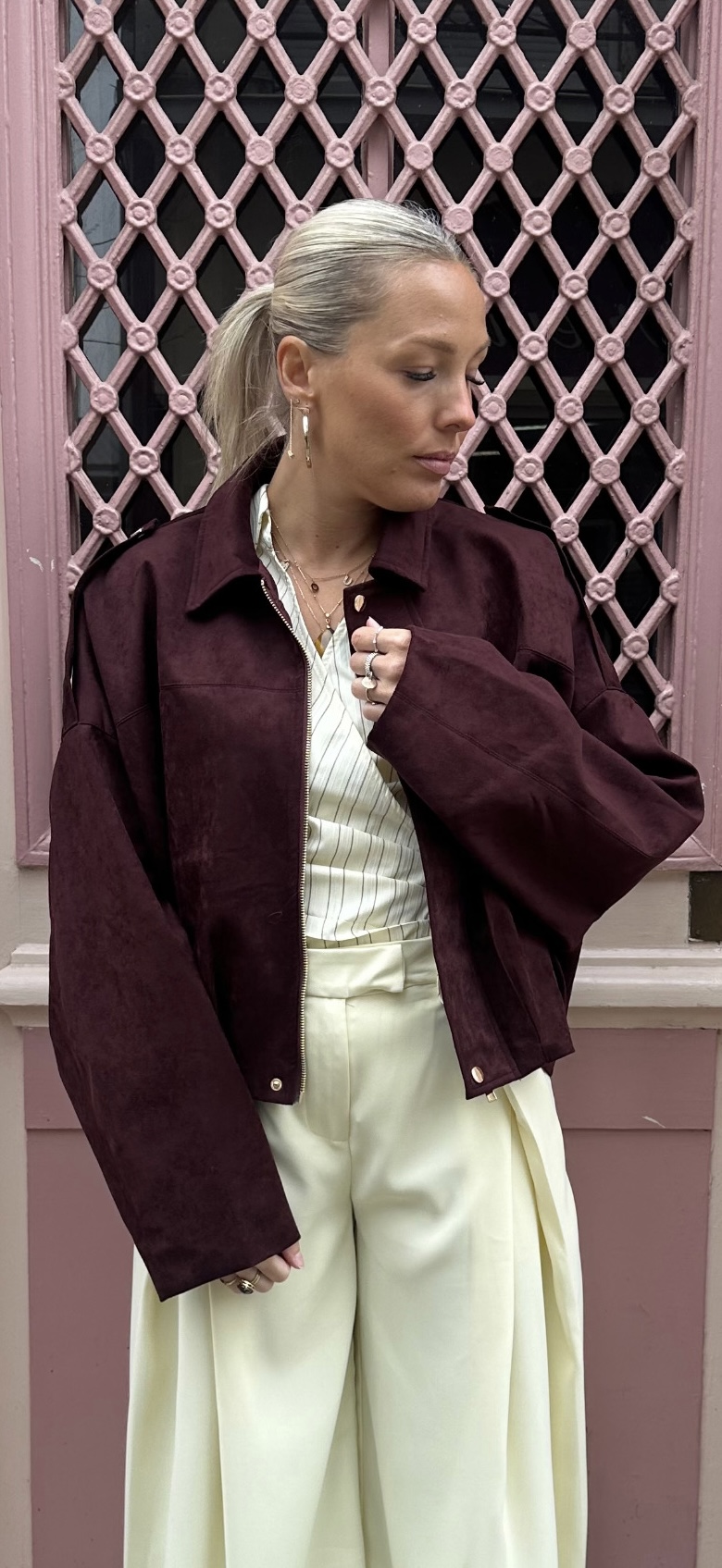 Ce bomber bordeaux oversize Alexia, est la pièce idéale pour apporter une touche tendance et sophistiquée à votre dressing. Pensé pour les femmes qui aiment allier style et confort, ce bomber oversisse en suédine se démarque par son allure moderne et sa matière douce au toucher. Sa teinte bordeaux profonde apporte du caractère à vos tenues tout en restant facile à associer, que ce soit pour un look casual ou plus habillé.