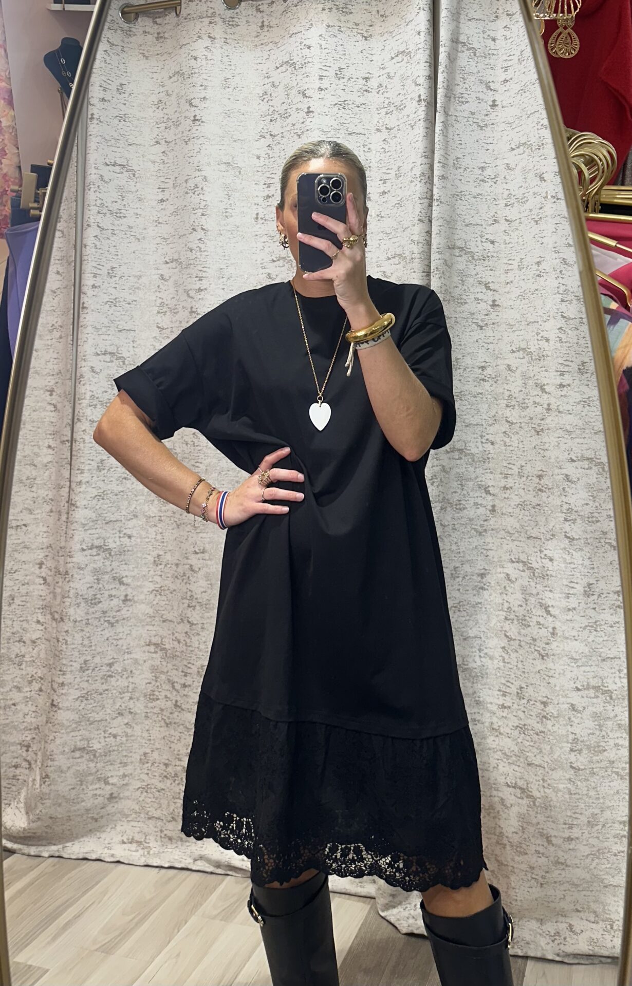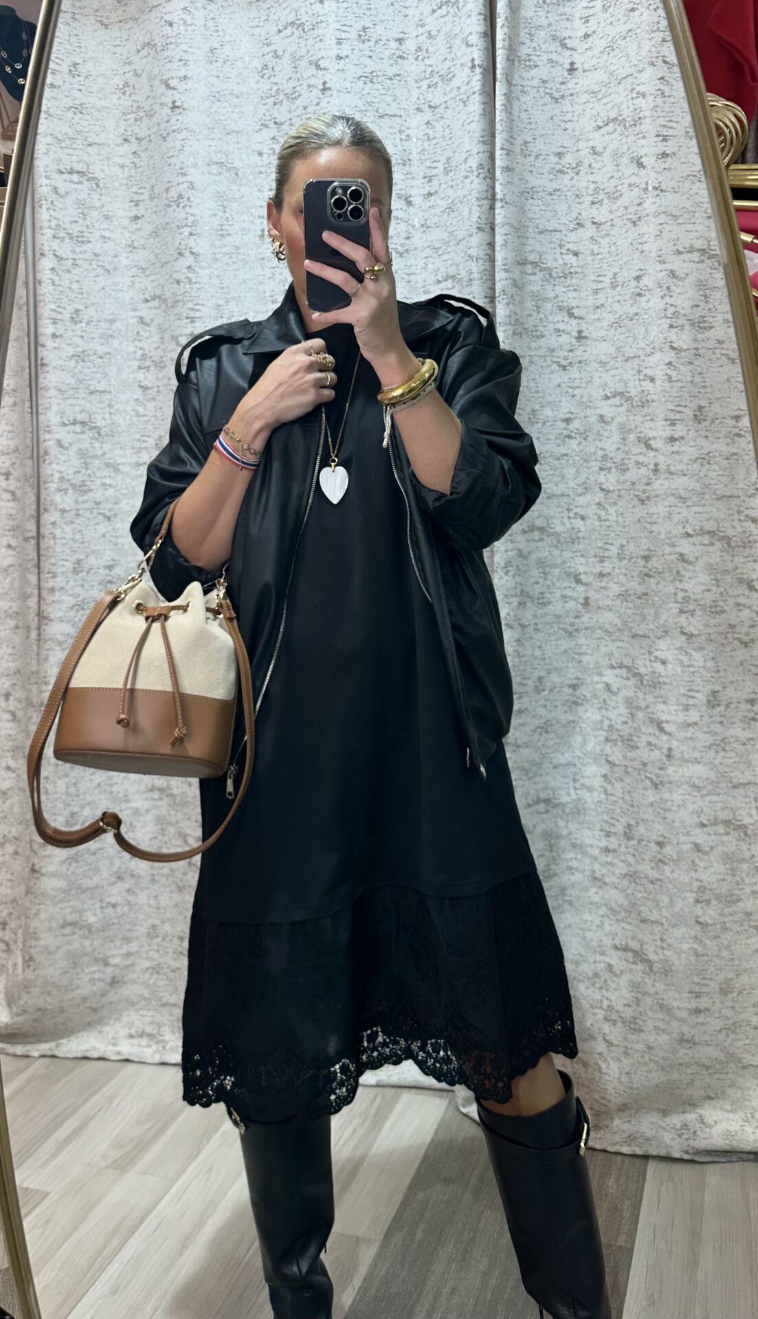 Découvrez Lola, une robe noire incontournable qui allie élégance intemporelle et détails raffinés. Cette robe noire avec broderie séduit dès le premier regard par son style chic et sa touche bohème subtile. Confectionnée dans une matière fluide et agréable à porter, elle se distingue par ses délicates broderies situées en bas de la robe, apportant une finition féminine et sophistiquée. Facile à porter au quotidien comme en soirée, elle s’impose comme un essentiel du dressing.