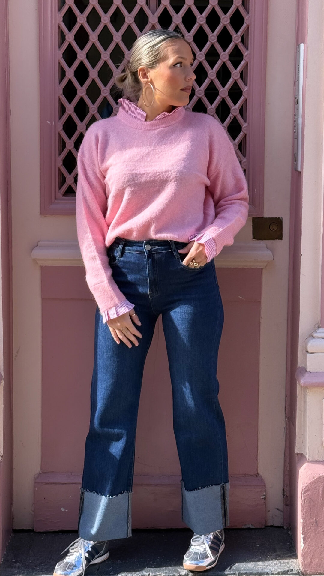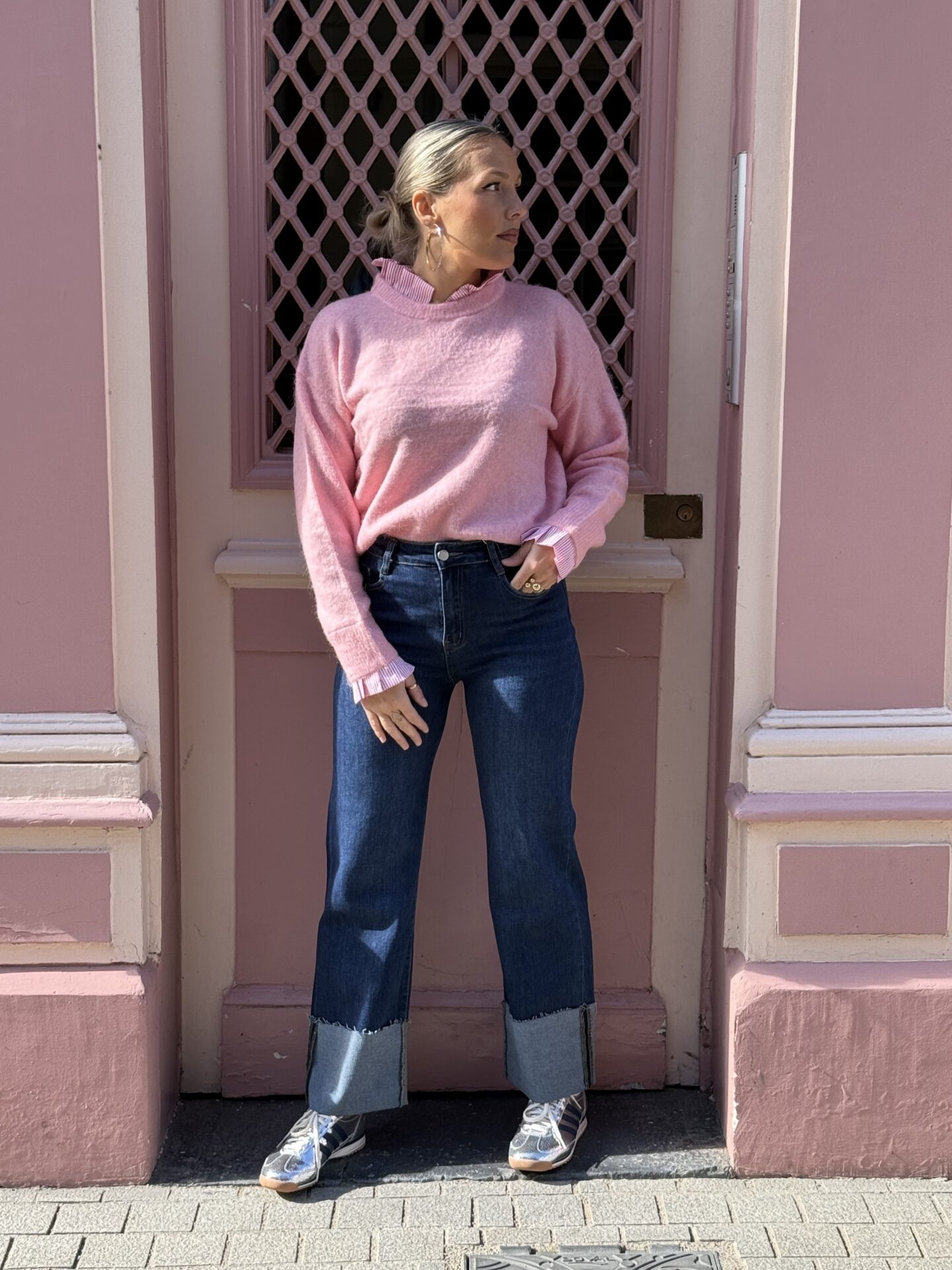 Le jeans à larges revers est la pièce tendance qui bouscule les codes du denim classique. Avec sa coupe droite et son ourlet généreux, il offre une silhouette moderne, à la fois structurée et décontractée. C’est le jeans parfait pour donner du caractère à vos looks tout en conservant un confort absolu.