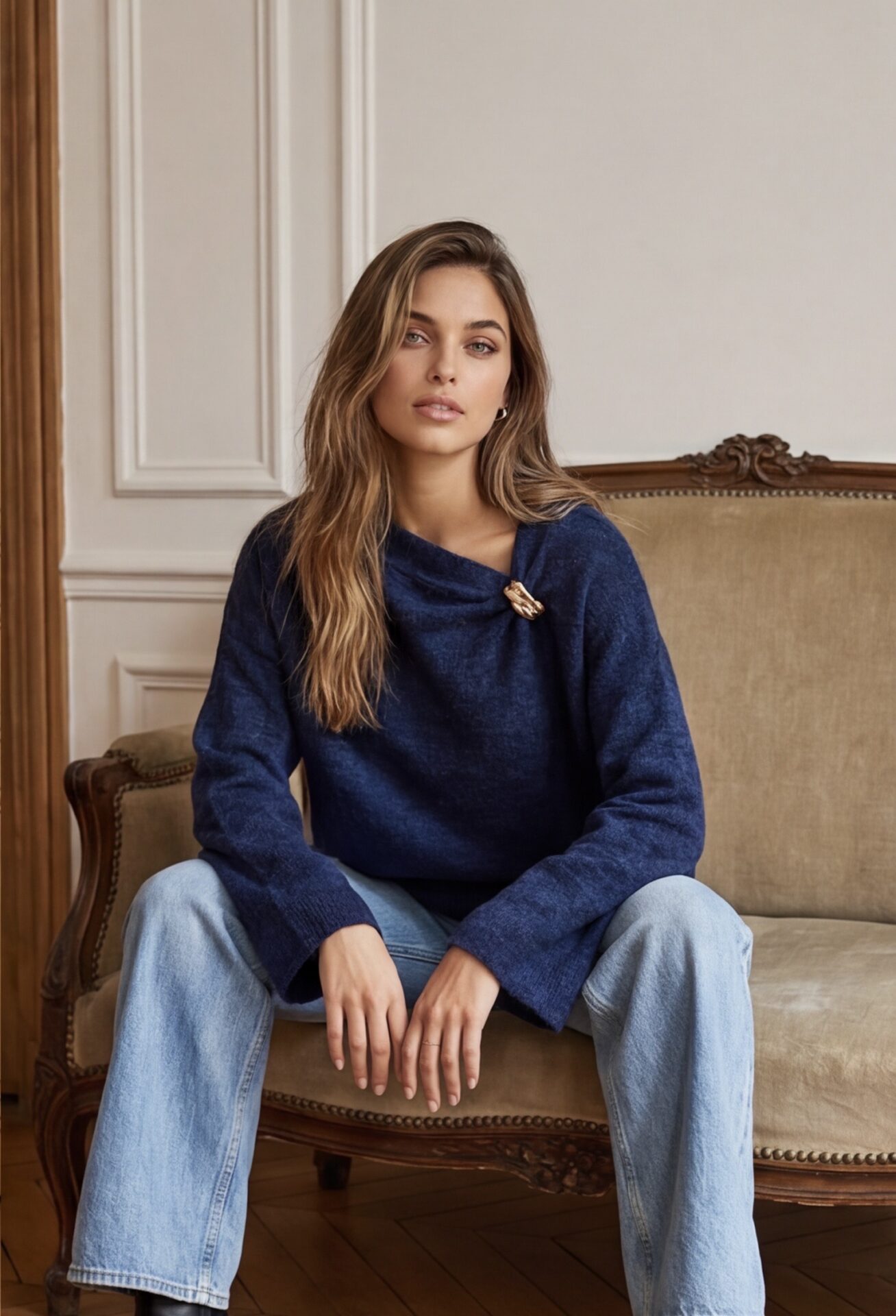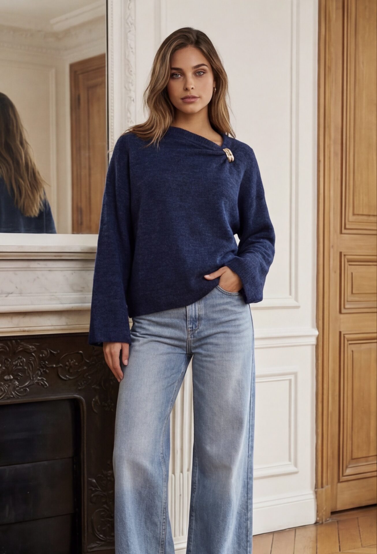 Le pull Bella est la pièce parfaite pour celles qui recherchent un équilibre subtil entre confort, élégance et originalité. Ce pull oversize à bijoux séduit par sa coupe ample et fluide qui enveloppe la silhouette avec douceur tout en apportant une allure moderne et décontractée. Sa taille unique s’adapte facilement à différentes morphologies grâce à sa forme légèrement loose et ses manches longues au tombé élégant.