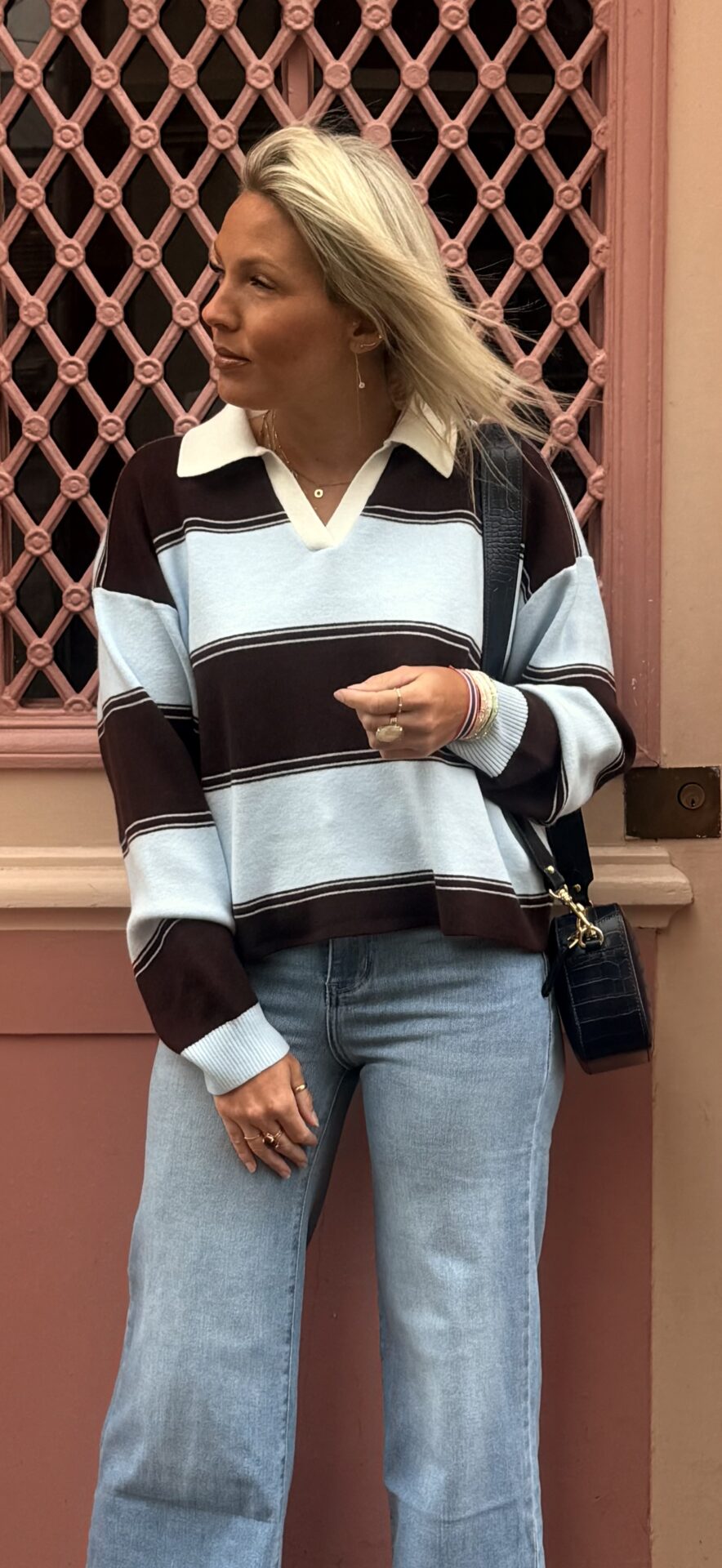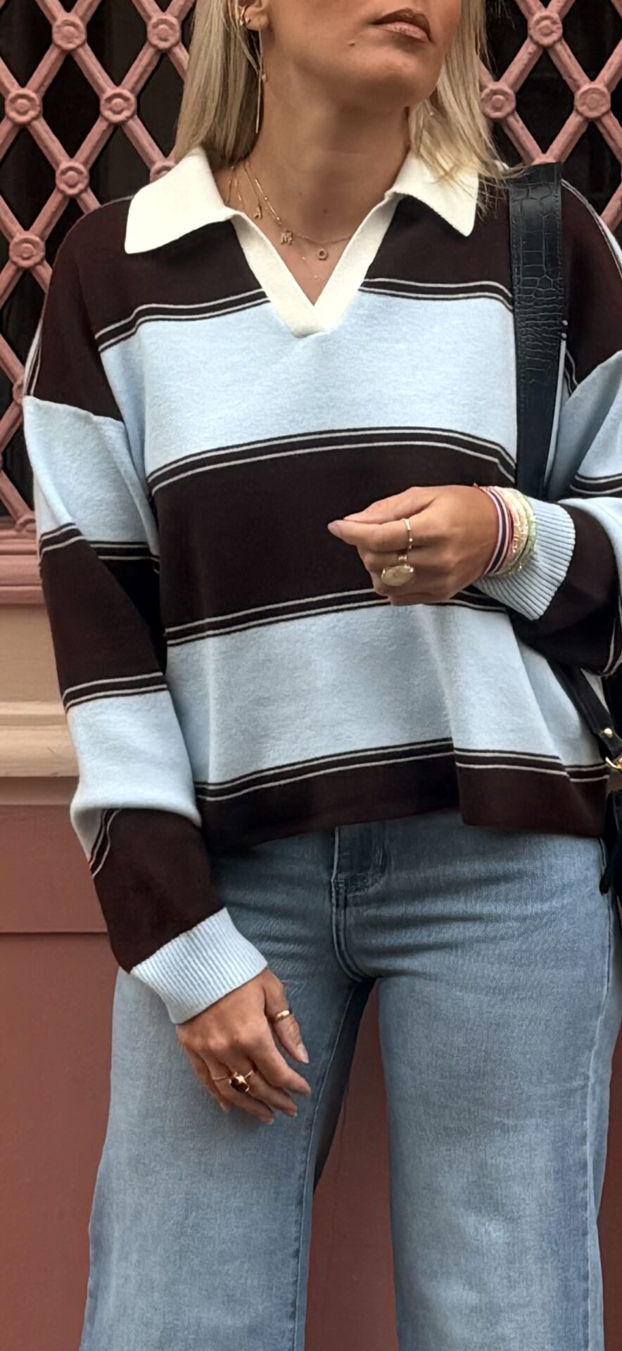 Le pull Paola incarne parfaitement l’équilibre entre élégance décontractée et modernité intemporelle. Ce pull rayé bleu, bleu ciel, chocolat séduit immédiatement par son harmonie de couleurs douces et profondes, qui apportent du caractère tout en restant faciles à associer au quotidien. Le contraste subtil entre le bleu ciel lumineux et les rayures chocolat profond crée une silhouette raffinée, idéale pour une allure soignée sans effort.